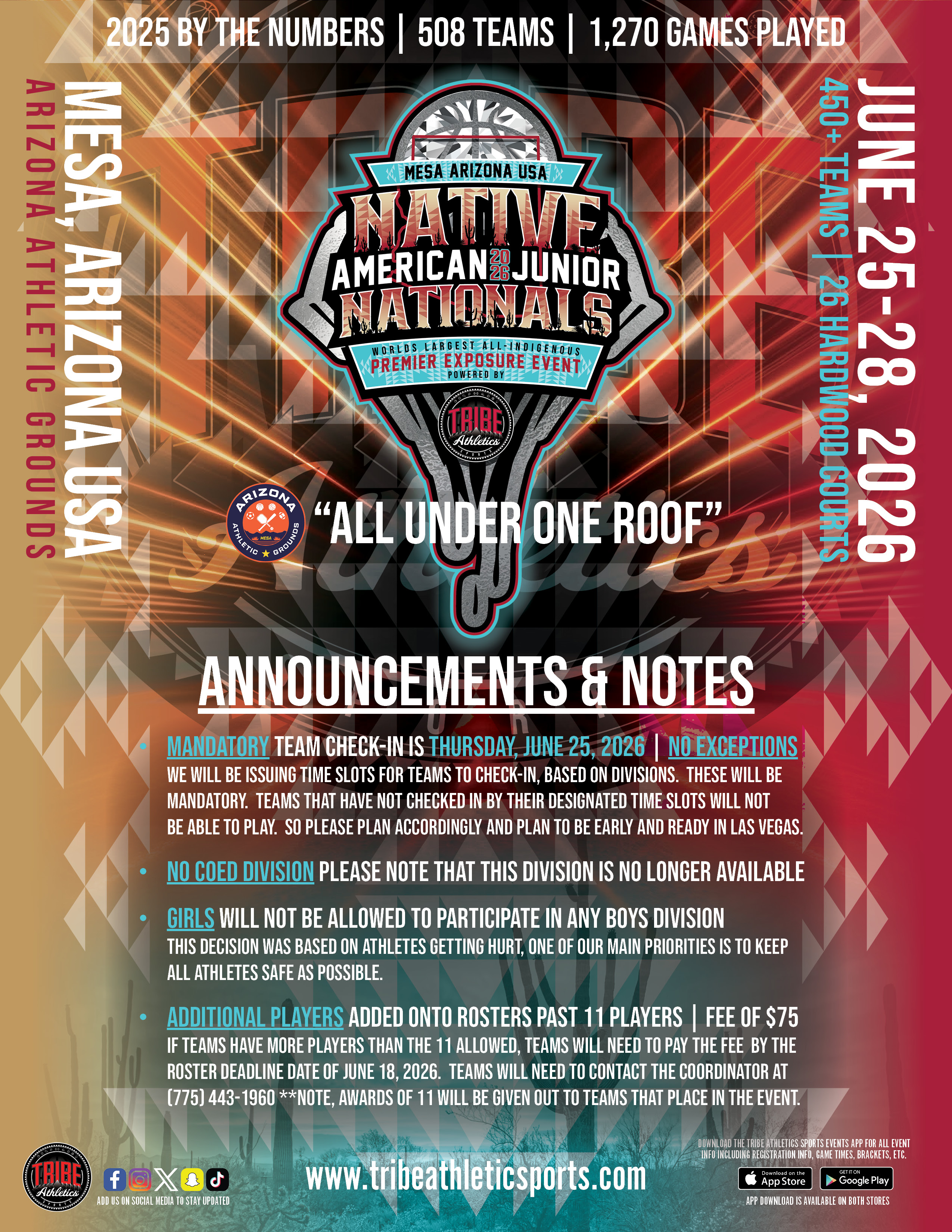 ❌ No individual team or player check-ins will be allowed after Thursday March 19th, 2026. Players or coaches listed on the original roster who miss mandatory team check-in will not be allowed to participate in the event.